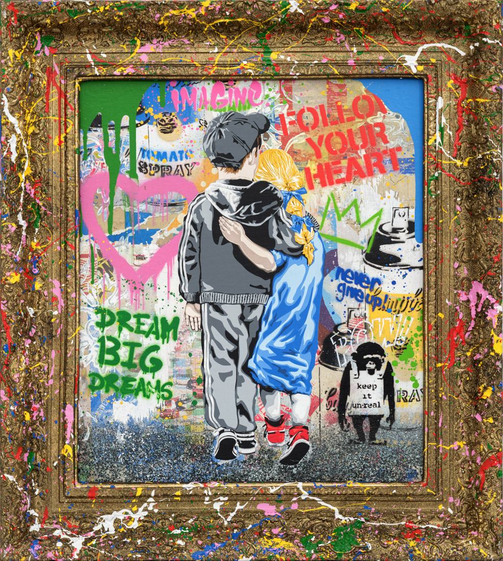 Sérigraphie et techniques mixtes sur panneau de toile avec cadre éclaboussé