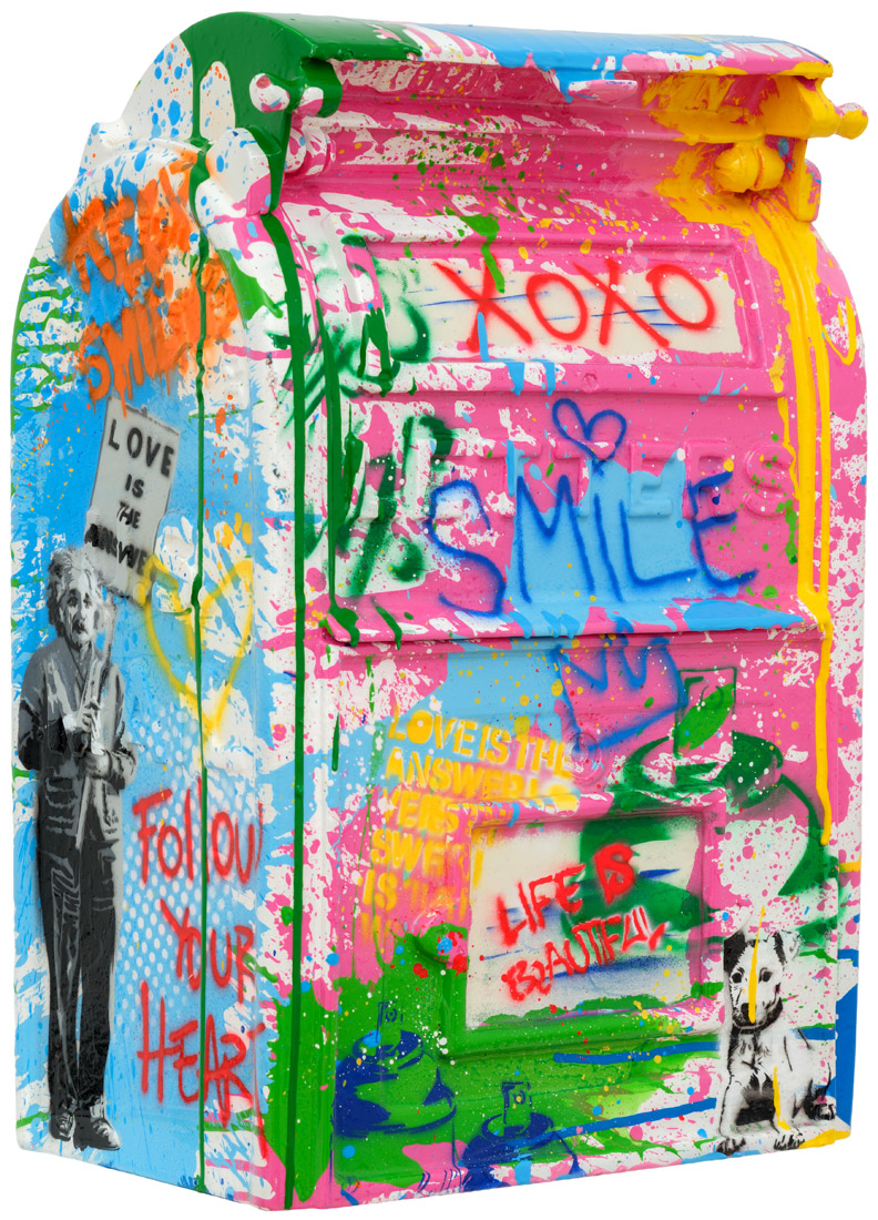 Pochoir et techniques mixtes sur sculpture en fibre de verre